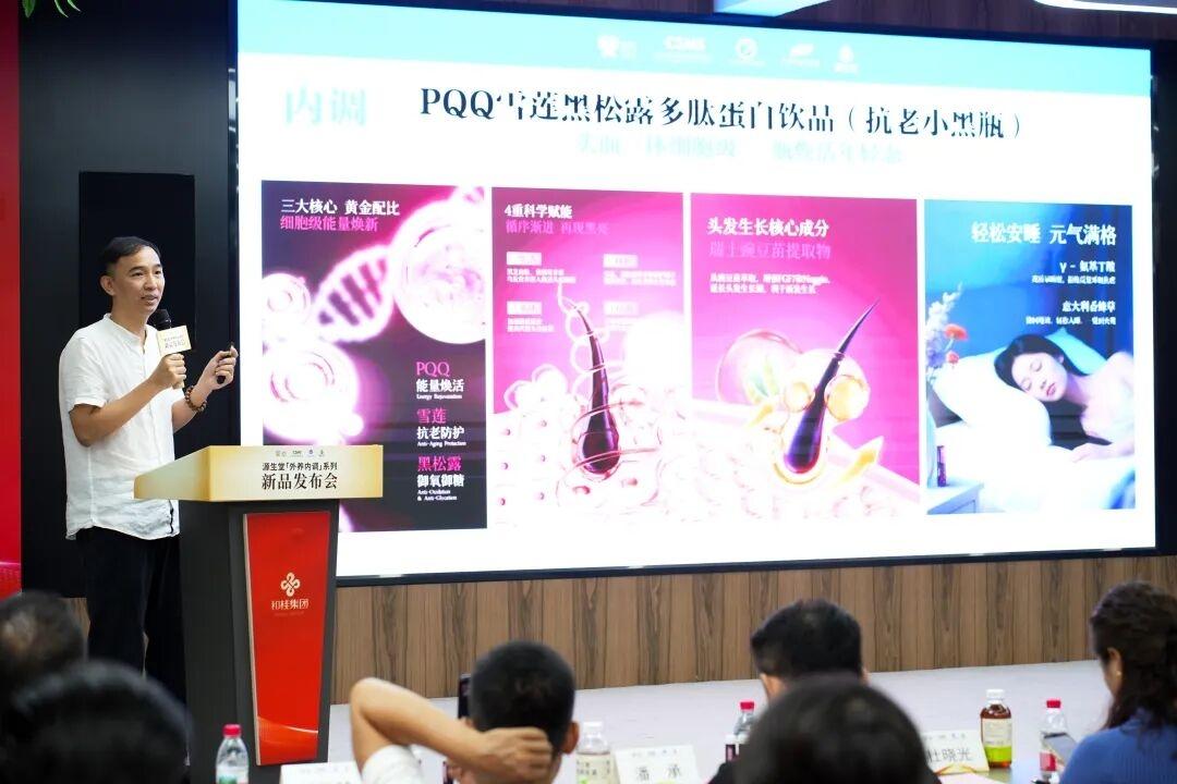 發(fā)布會上,源生堂推出了兩款備受矚目的新品——PQQ抗老小黑瓶和HSA頭皮賦活液。這兩款產(chǎn)品以“外養(yǎng)內(nèi)調(diào)1+1>2”為核心,構(gòu)建起立體化抗衰體系。