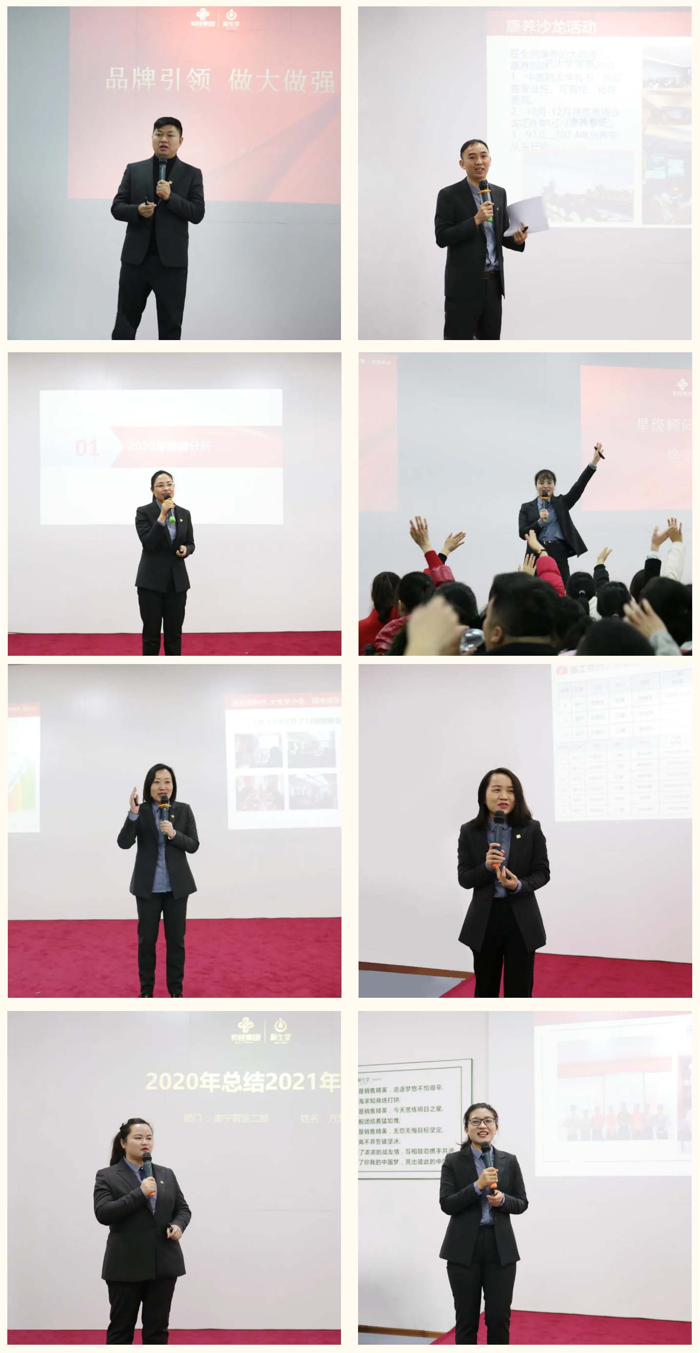 各部門根據(jù)本部門的實際工作情況,分別從品牌規(guī)劃、產(chǎn)品研發(fā)、服務(wù)提升、門店管理、人員培訓(xùn)、拓客營銷、招商加盟等方面進(jìn)行了匯報,匯報工作亮點突出,可行性強(qiáng),一個個奮斗的故事,感動人心,一個個創(chuàng)新的思路,振奮人心。參會的家人紛紛表示,2021年,一定會繼續(xù)發(fā)揚(yáng)艱苦奮斗的精神,嚴(yán)格執(zhí)行各項工作計劃,超額完成制定的任務(wù)目標(biāo)。
